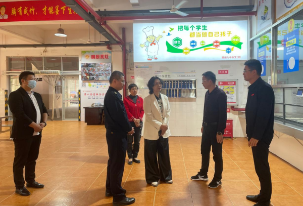 为保障师生饮食健康,筑牢校园食品安全防线,11月25日上午, 区人大肖建珍副主任率领区市场监管局、区教育局相关领导一行莅临我校。朱国忠校长、张弦副校长及学校食堂相关负责人陪同检查。